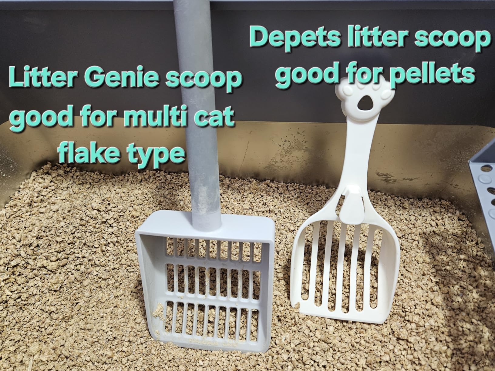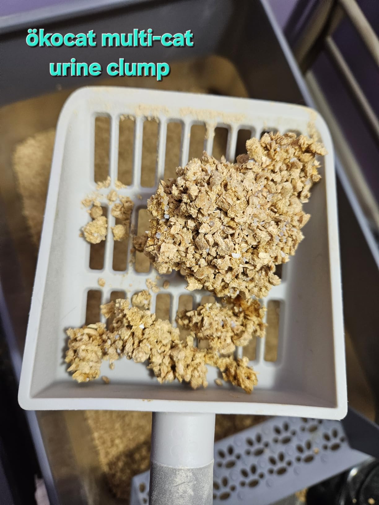As someone who has searched high and low for a cat litter that would not end up in my bed and all over my floor, I LOVE this product (Okocat for long hair breeds). My little bundle of hyperactivity (aka a part Saimese, medium/long haired beauty named Mia) loves to dig deep into her cat litter. She also loves to leap straight out of her litter box and right onto my poor, ever suffering, bed. As someone who has to keep the box in my room (due to space requirements and a waaaaay too curious puppy dog), having a clean space is super important to me and as such, I have been struggling with maintaining a clean environment for myself and my cat since I got her 6 months ago. Every other litter has ended up everywhere, and has either had dust issues (I have allergies), an overwhelming smell/perfume issue, or is just generally unhealthy for my Mia (I'd much rather she not get lung cancer or asthma from using clay litters, but will admit that until now, clay had been the best option for us). Alas, I thought I was going to have to live with little disgusting pieces of litter in my bed and on my floors forever. Also, crystals were not an option because my last cat actually died from health problems caused by his crystal cat litter (it was horrible and I highly suggest that people research health concerns related to crystals before innocently bringing it into their homes...). Anyway, after trial and error with just about every cat litter under the sun (thank goodness I have an adventurous cat who will try anything), I ran into Okocat for long hair breeds.So, all the good things about this litter: 1. There is almost no tracking at all (just a bit around the box when an excited kitty jumps out). 2. There is no smell other than a slight wood smell right after the cat pees (if you notice a smell after your cat poops, try adding another inch or 2 of pellets as my cat just needed the extra pellets to figure out how to get everything covered), 3. It feels/seems cleaner due to Okocat claiming that it kills 99% of all bacteria (unlike other litters that only claim to kill odor causing bacteria...what about all the other nasties?!). 4 It clumps pretty well (they do break up some, but I have a solution for that issue if you read further) for a natural litter. 5. It is natural and healthier for my cat than other options.The downsides (not many, but worth considering): 1. You'll have to shop around because the prices on here can be good some days and terrible the next. Recently, I found this litter on another site for $10 less per box...so yeah...make sure you are getting the best price. 2. There is some dust. It's not horrible, but if you have allergies like me, you'll want to use a sifter of some kind to put clean litter in so you don't end up pouring sawdust in the litterbox every time you put new litter in. Also, after a couple weeks of use (even with scooping 2 times per day like I do), you'll notice some sawdust building up in the litterbox just from litter getting crumbled up with digging, etc... Even though it works up my allergies a bit when cleaning, I can accept some coughing (it's just for a few minutes anyway) if it means that I'm not exposing my cat to types of dust that can cause lung cancer down the line - I'd like to note that other types of litter made my cat cough, but this doesn't seem to do that to her as much. 3. It takes some creativity to get the scooping process to actually leave a nice and clean box if you are not used to clumping pellet litter. So, onward to my solution!!!There is no specific scoop that has been made by Okocat for scooping this litter, so you have to find something that won't scoop out too much good litter while also being able to get rid of small pieces that may break away from a main clump of pee while scooping (poop is not a problem. It just dries out and is easy to remove). While some people suggest the Catit litter scoop, this was not useful to me since I have back problems and can't bend down to get at the litter to scoop it without suffering later. So, after some trial and error, I found a great and easy option.First, I got the PURRR-FECT SCOOP (I already had it), which is basically a litter scoop that you can stand while using. The newest version of this scoop has holes at the front that are wide enough to let pellets through and small holes at the back that can capture even tiny broken pieces that might usually be missed when scooping. This is a great scoop. However, it is too small to sift through the whole box quickly and if you scoop too much at once, the whole thing clogs up and is useless. So, I use this just to get the small pieces that escape my main scooper.My main scoop basically had to be made because there are no standing scoopers that have holes big enough for pellets (as far as I could find). BUT, this was easy to do. I found a generic metal scoop in my local Walmart that had huge holes (perfect for pellets) but a tiny handle. So, I spent $2 to get a 1 inch diameter...